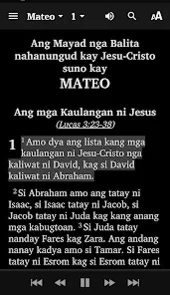 Kinaray-a Bible är en kostnadsfri app som gör det möjligt att läsa, lyssna och meditera över Guds ord på Kinaray-a. Den erbjuder en rad funktioner, inklusive nedladdning av ljudbibeln för Nya Testamentet utan annonser. Användare kan enkelt navigera genom bibeltexten med en praktisk svepfunktion och kan också markera sina favoritverser, lägga till anteckningar och söka efter specifika ord.